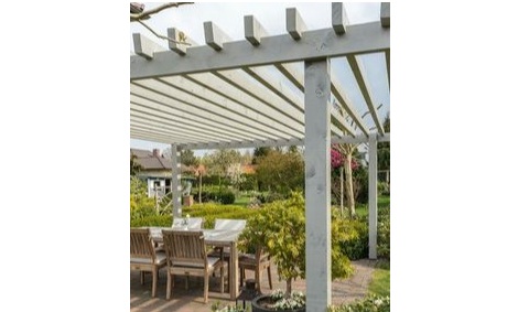 Pergolado em área externa: ideal para criar uma área sombreada ao ar livre, ou seja, perfeita para relaxar ou receber convidados, além de que fornecem a estrutura ideal para plantas trepadeiras, adicionando um toque de natureza e aumentando a sombra.